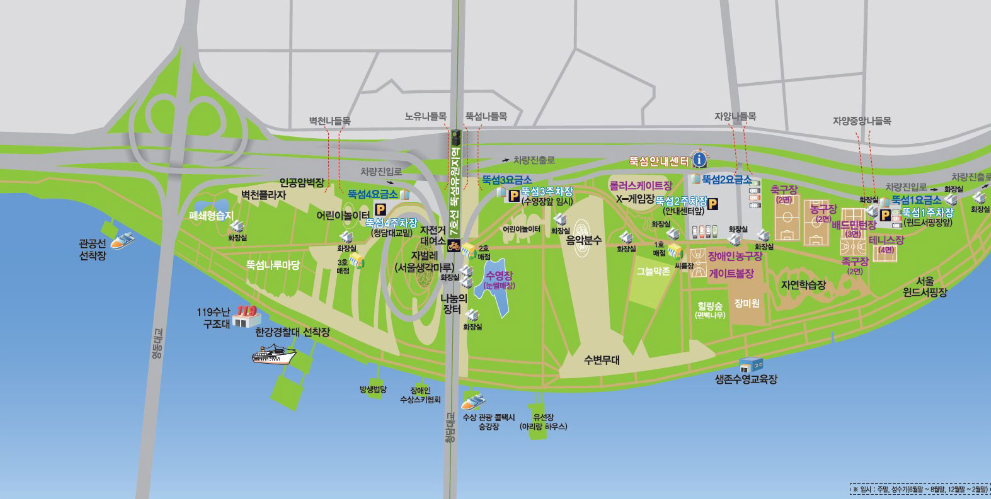 - 한강 뚝섬공원 주차장 이용고객 중 한강 뚝섬공원 내 선착장 및 새빛섬 내 유료시설을 이용하시는 분들에게 제공되는 할인서비스입니다.